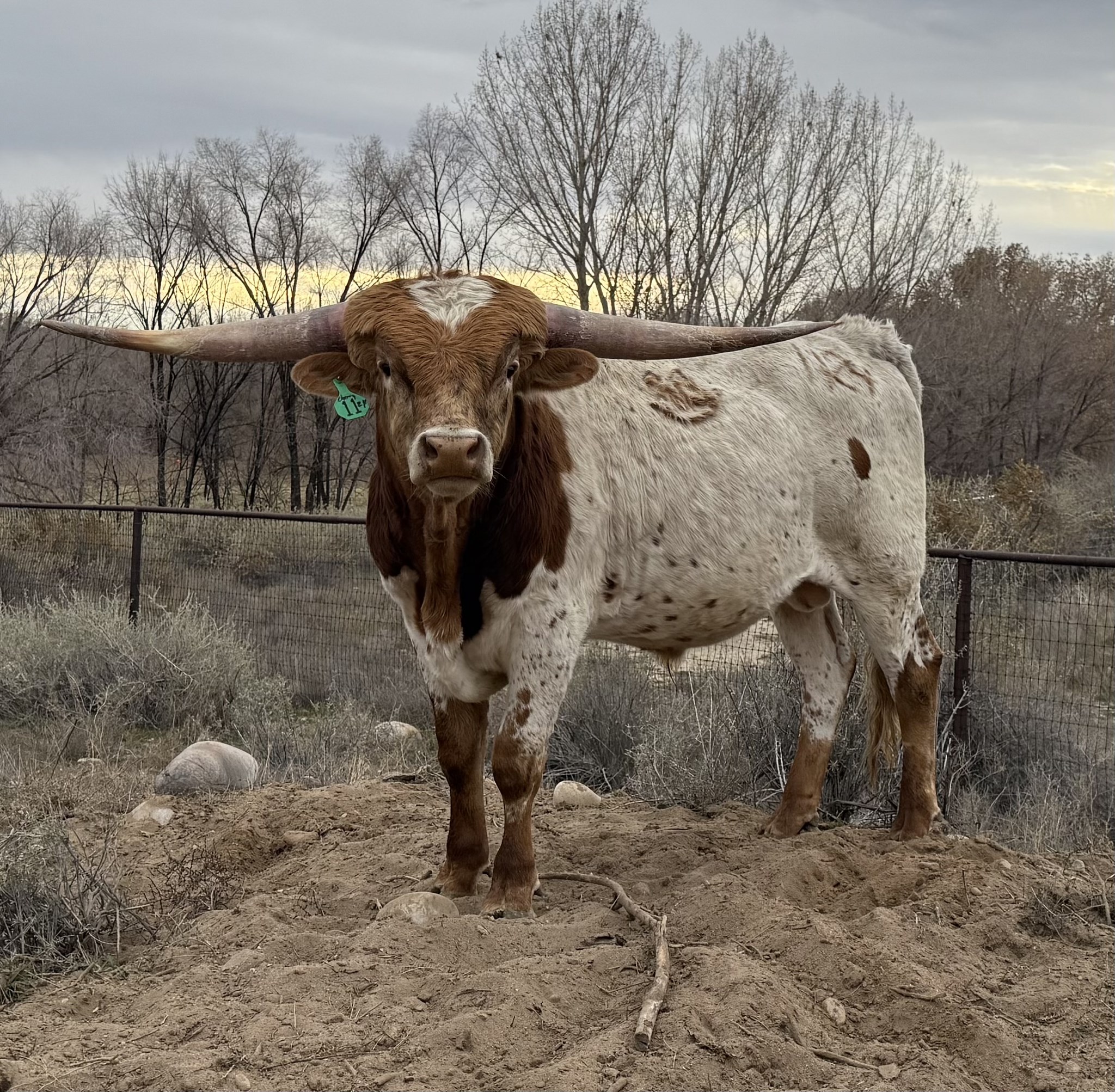 He is a very lateral horned bull with an impeccable pedigree. The 4SS partnership was retaining him and watching him grow into a herd sire and we have decided he will be a great one. He is now offered to the public. 60” at 20 months
