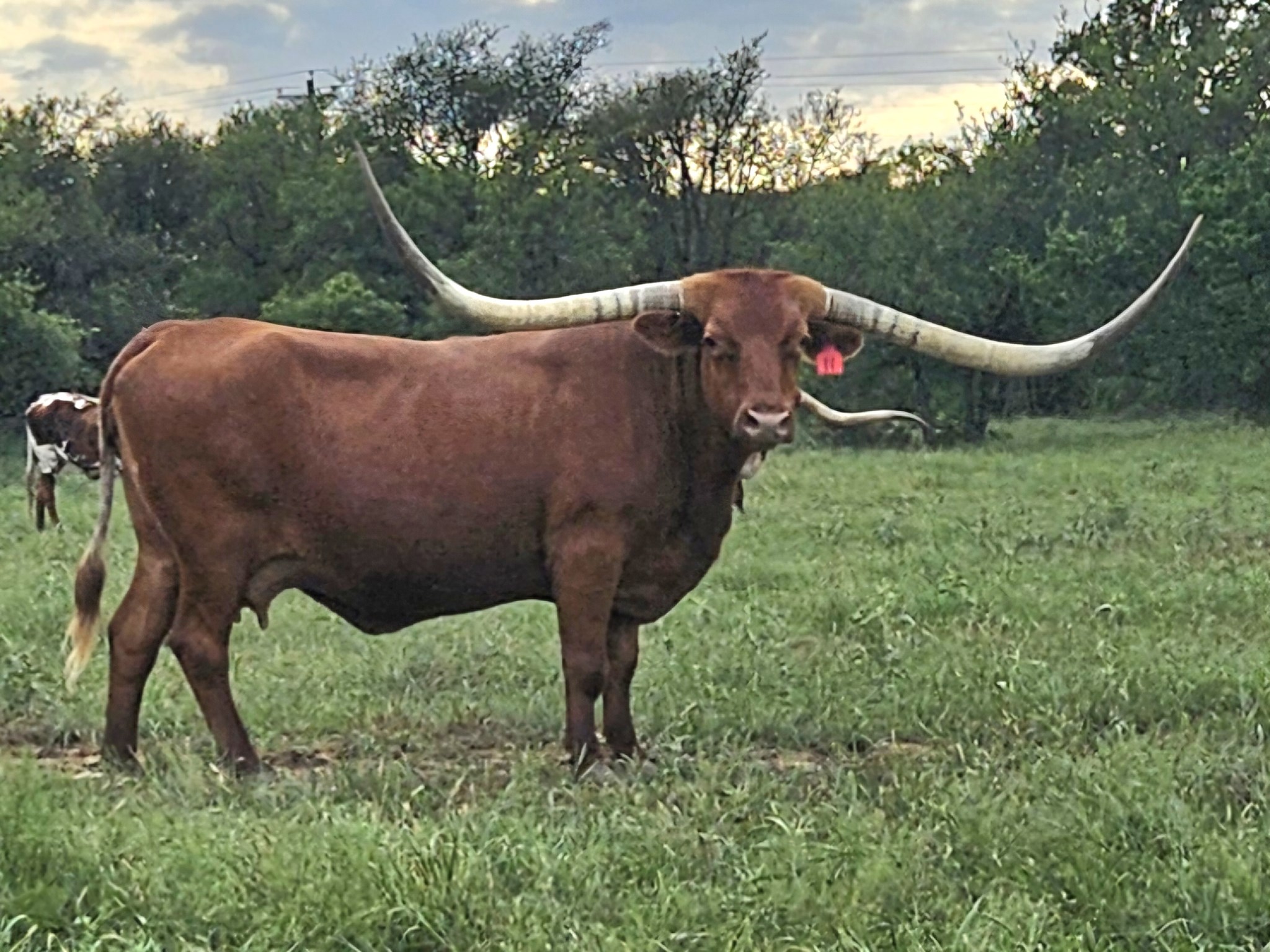 Have a look at this big soggy cow. Lady Derringer has such a presence in the pasture. She’s an own daughter of the great Cooper’s 167 Lamb! This maternal family is one of the best producing families for Bolen Longhorns. JHM Longhorns is using a great Fifty-Fifty son of hers in their program. She's bred to Black Market C&B (WS Vindicator x BL Rio CanCan)